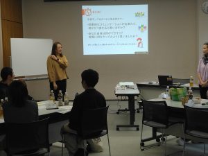 先生の話をしっかりと聴き、グループワークでは皆で意見交換をし、時には笑い声も聞こえてくる和やかさもあり、最後は個人の感想をはっきりと述べる、とても良い研修でした。