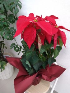 取引先のお花屋さんからいただいたポインセチアです。